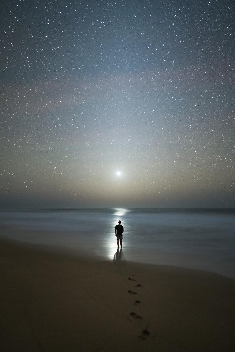 An evening at the beach watching Venus set on the Pacific Ocean.