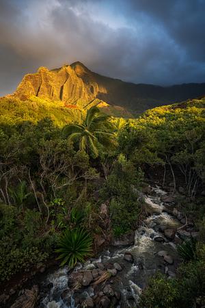 The last light of the day painting the spires of Kalalau Valley after a day of rainfall.