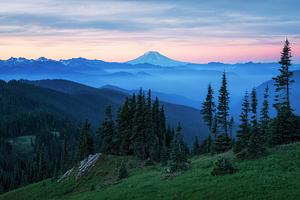 Moments before dawn looking south towards Mt Adams from Mt Rainier.