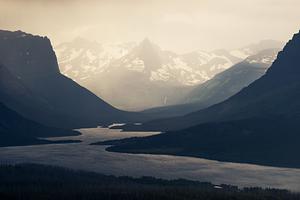 A stormy late summer afternoon looking towards Saint Mary Lake and Glacier National Park.